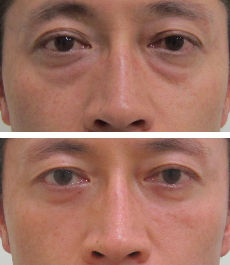 施術前/6か月後・・・赤・黒・青クマの治療例です。