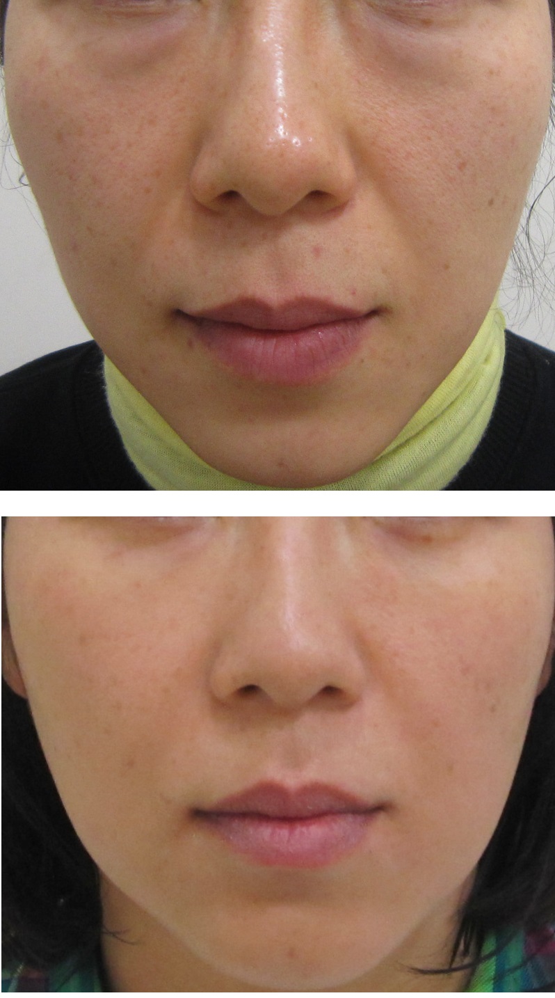 施術前/3か月後・・・目の下・頬のグロースファクターを受けられています。