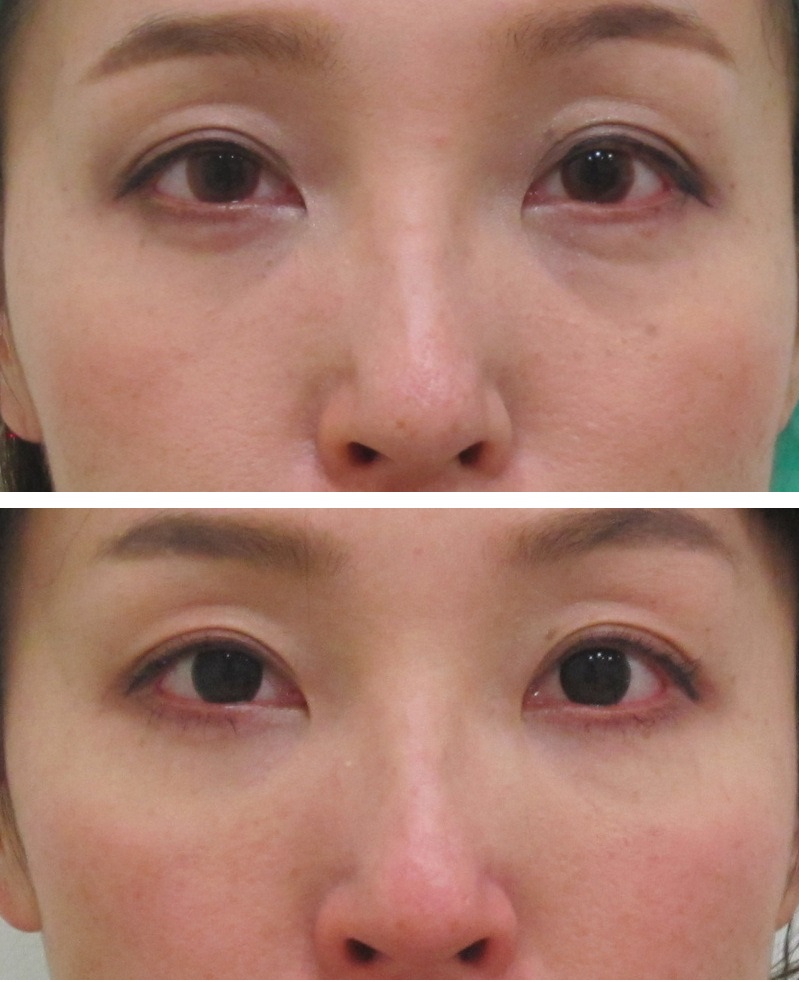 施術前/6か月後・・・他院様で目の下の脱脂のみを受けられ、その後当院でグロースファクターによる修正治療を受けられた方です。