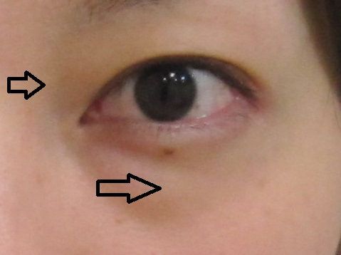 術前・・・目の下だけではなく、目の上にも青クマが見られます。