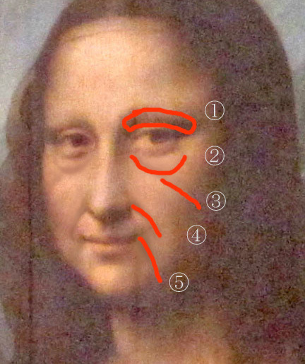 施術前・・・全体的に皮膚のたるみがあり、②~⑤にうっすらとシワがあります。