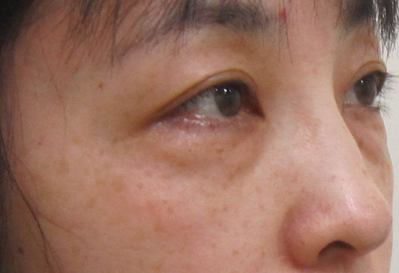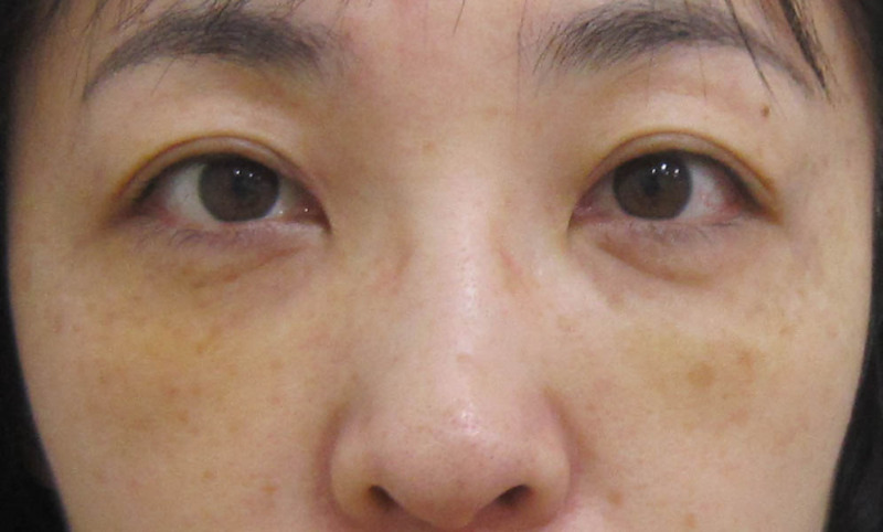 経結膜脱脂+グロースファクターによる目の下のたるみ・クマ治療のモニターの方です。
