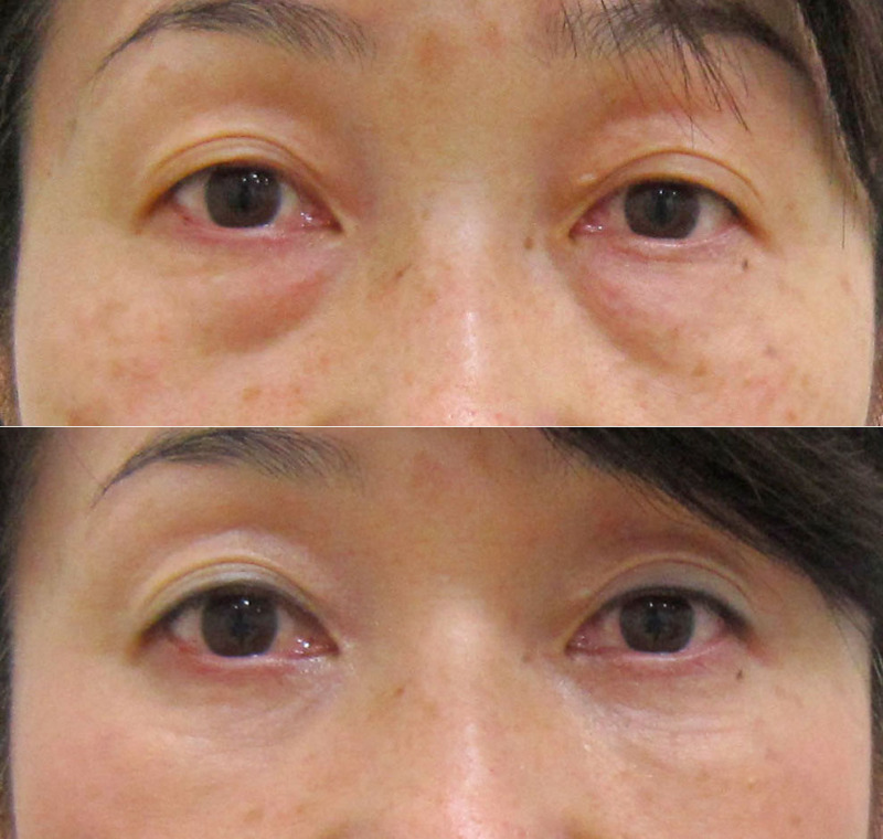 逆に、グロースファクターのみでもくぼみは改善できますが、目の下の脂肪が重度の場合は、目の下が膨らんだ印象は残ります。