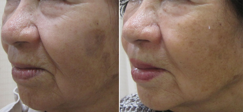 症例写真 最終更新日 2020.06.20 1回の治療で若返り・・・グロースファクター全顔 グロースファクターによる顔全体の治療を受けられた方です。 施術前 2か月後 3か月後・・・徐々にシワが少なくなってきていますね。 全体的に若々しい印象になっています。 施術前/3か月後の目元の比較・・・たるみがきれいになっています。 施術前/3か月後・・・メラフェードによるシミ・くすみ治療の併用により、頬の大きなシミもきれいになっています。 一つ前のページへ戻る>>