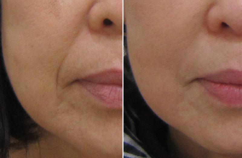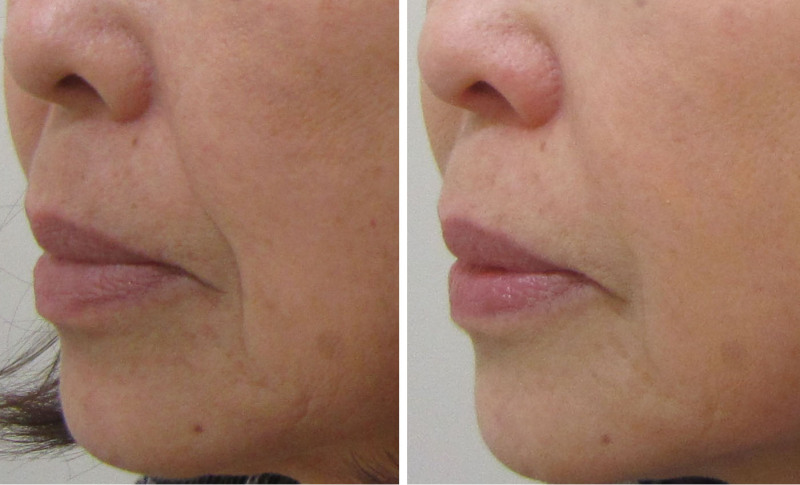 施術前と6か月後の比較・・・法令線のシワが浅くなっていますね。
