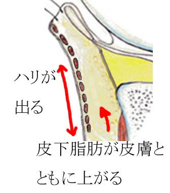 皮膚がリフトアップすることで、筋肉と皮下脂肪も一緒に上がってくると考えます。