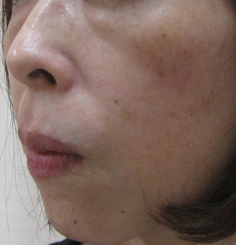 顔全体のグロースファクターとメラフェードによる治療を行いました。