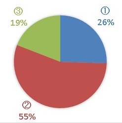 20代は平均1.5ですが、50代になるにつれて③に近くなっています。