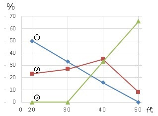 ③は、①とは逆に、20代ではゼロで、年齢が上がるにつれて多くなります。