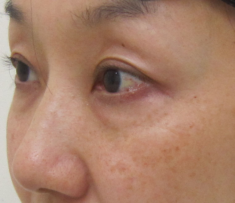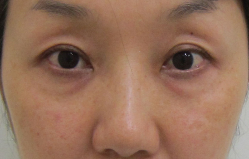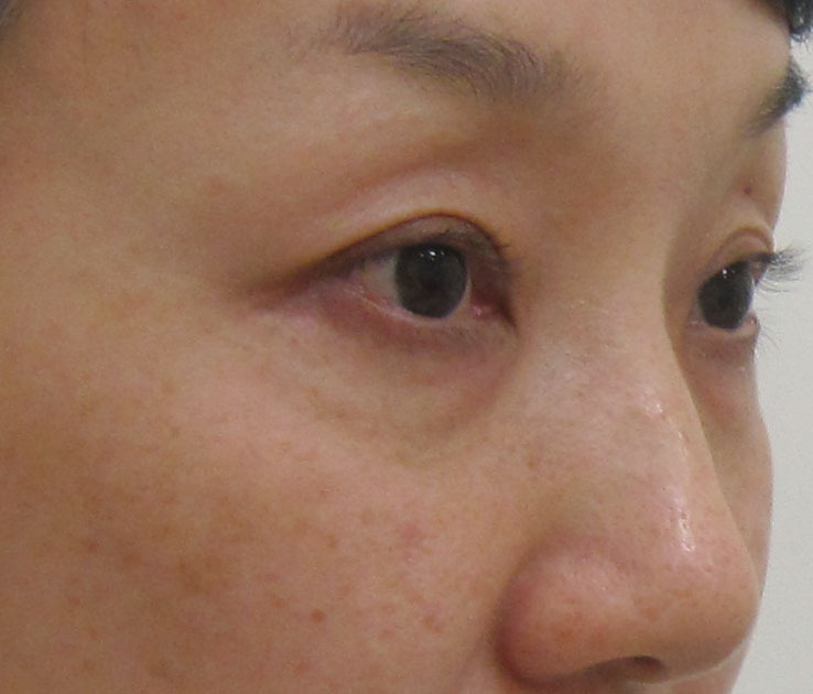 術前・・・目の下のクマは、脱脂+グロースファクターによる治療(経結膜脱脂法および目の下のグロースファクター)です。