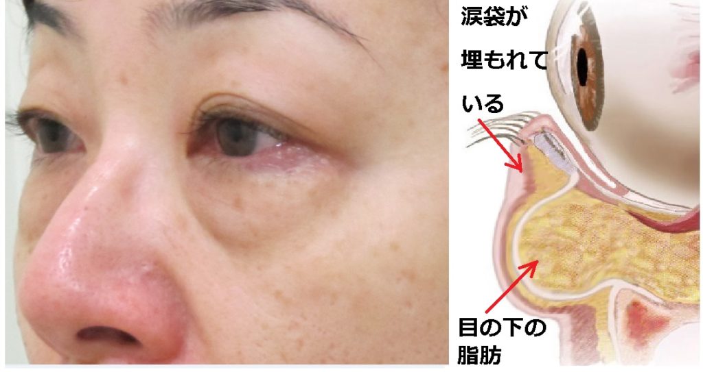 涙袋が、完全に目袋(目の下の脂肪)に埋もれた状態になっています。