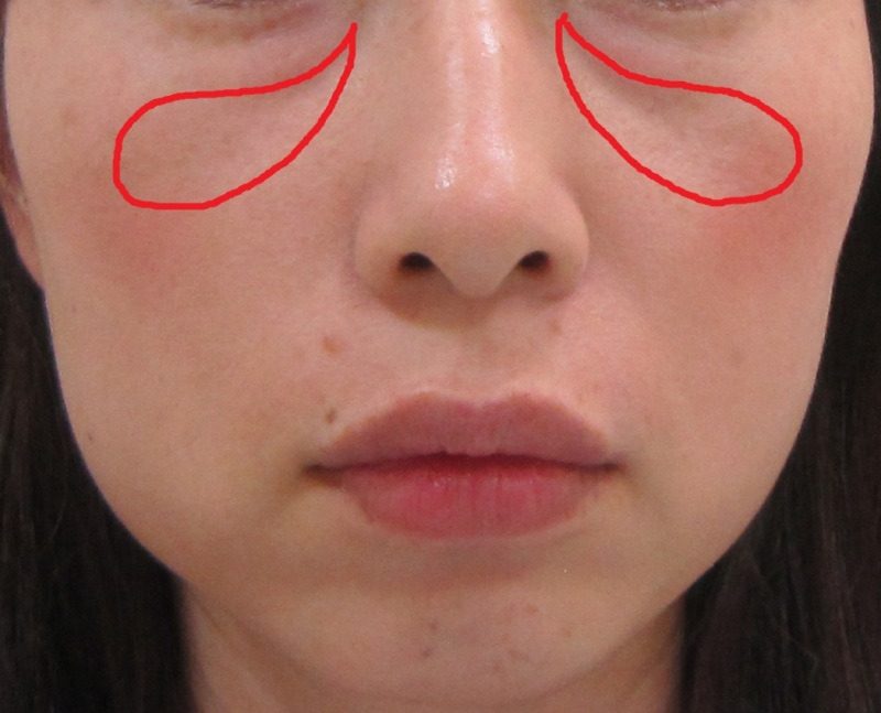 目の下に、脂肪によるふくらみとくぼみがあります。
