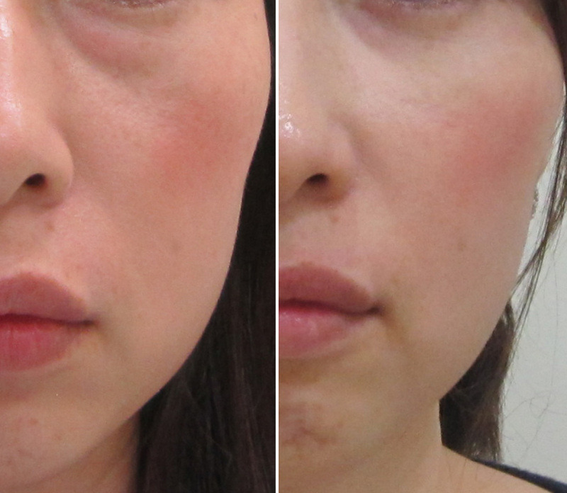 そこで、頬のくぼみに対してグロースファクターを、シミに対してSR を行っています。