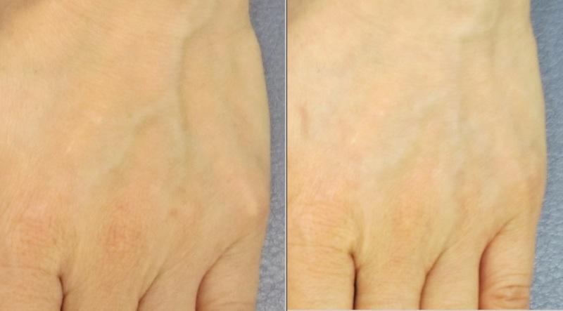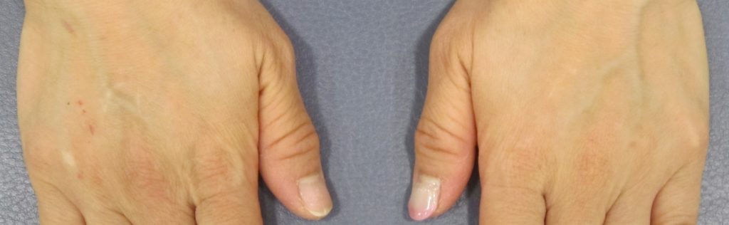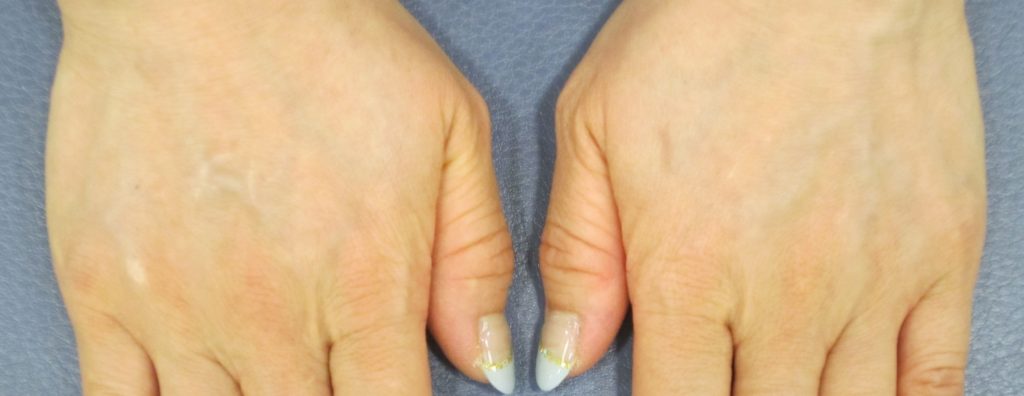 手の甲の血管の浮き出しをグロースファクターで治療されたモニターの方です。