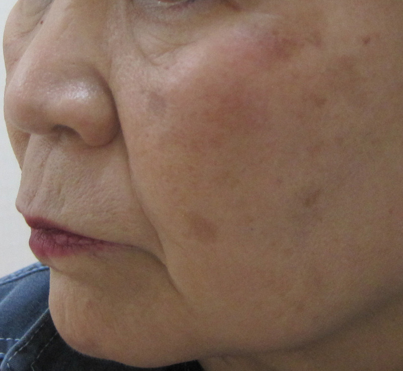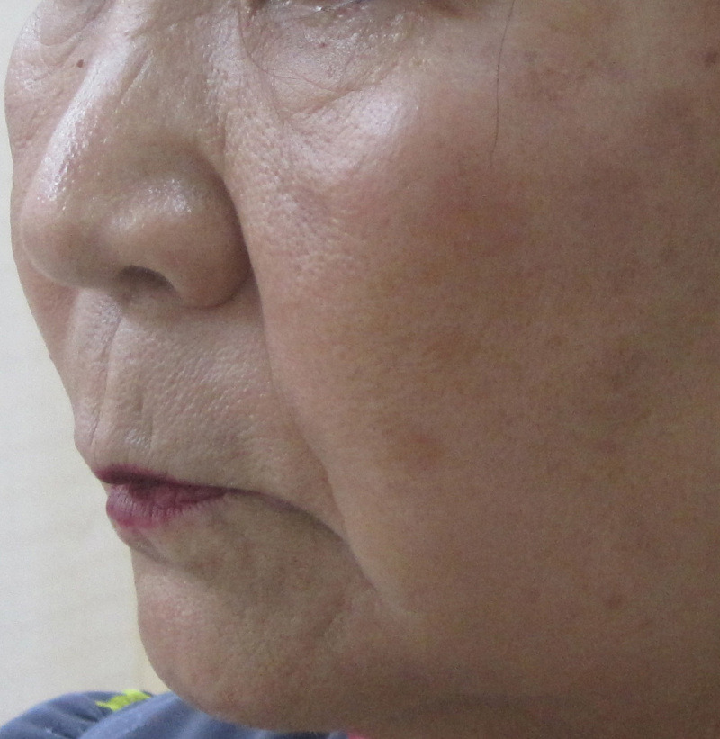 全体的にシミ・くすみが取れ、シワも改善しています。