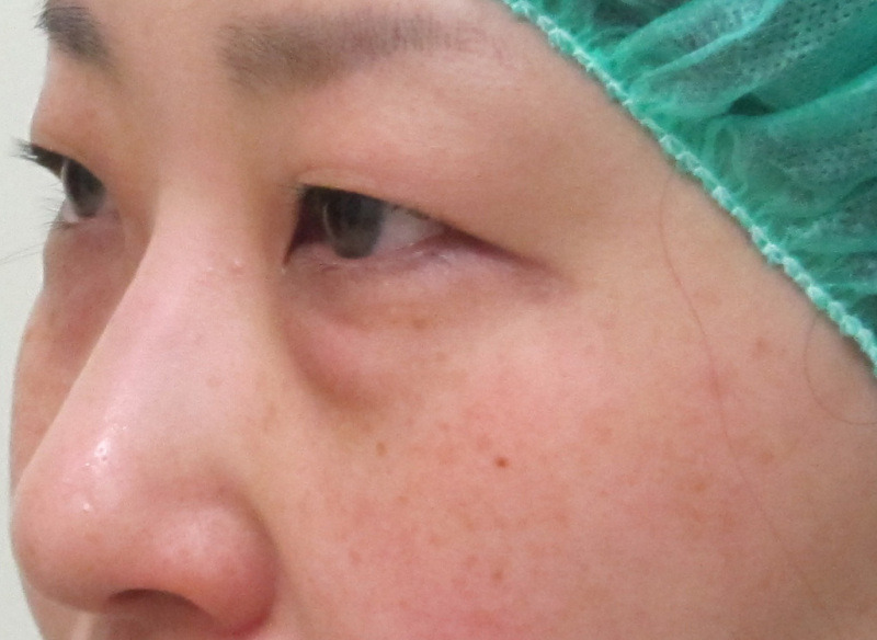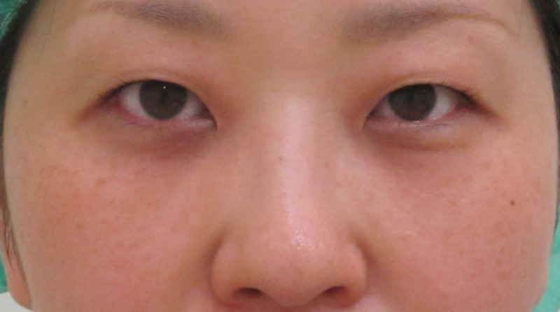経結膜脱脂+グロースファクターの術後1ヶ月よりメラフェードによるシミ・くすみ治療を受けられました。