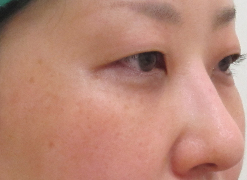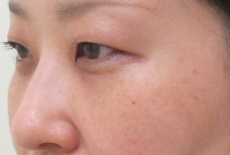 目の下のシミはわずかに残っていますが、それほど目立ちません。