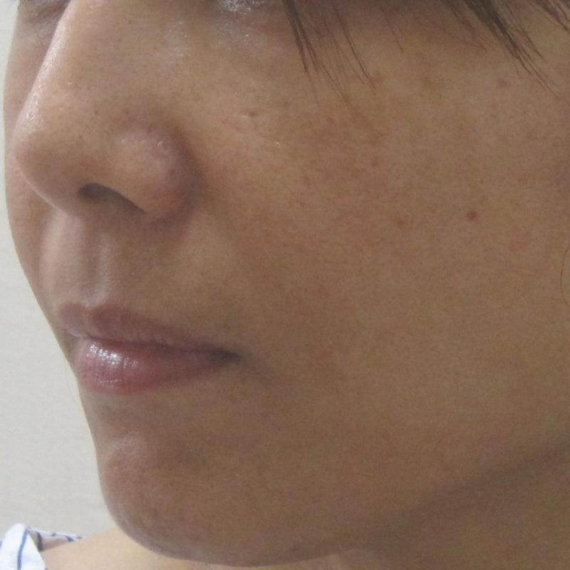 症例写真 最終更新日 2020.05.27 顔全体のたるみ治療+シミ治療 7カ月後の経過 グロースファクターによる顔全体のたるみ治療+メラフェードによるシミ・くすみ治療をされたモニターの方です。 施術前・・・ほうれい線のシワと顔のたるみが軽度あります。 また、全体的に肌のくすみもあります。 7カ月後・・・全体的にシワ・くすみが減り、若返った印象です。 全体的にリフトアップしています。 施術前・・・斜めから見た状態です。 7カ月後・・・きれいになっていますね。 一つ前のページへ戻る>>