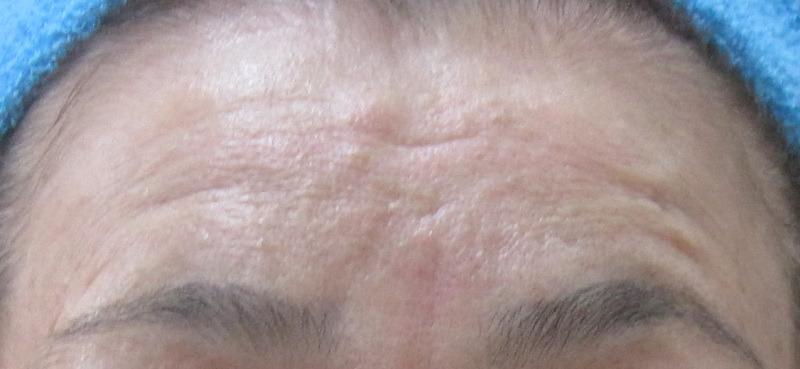 額・眉間のグロースファクターと眉間のボトックスをされたモニターの方です。