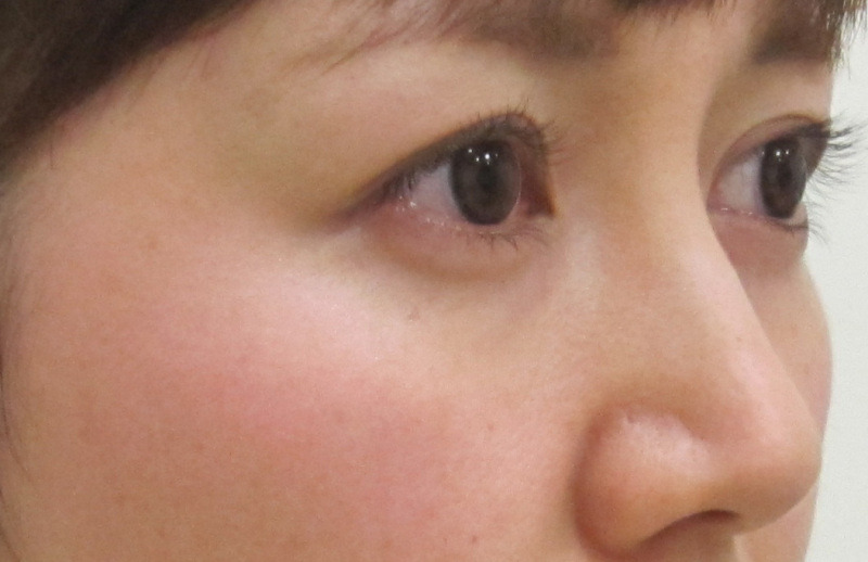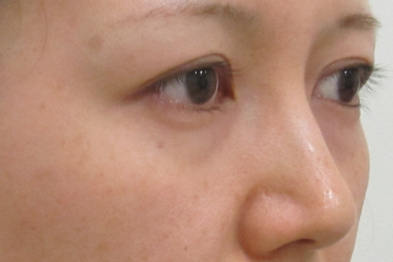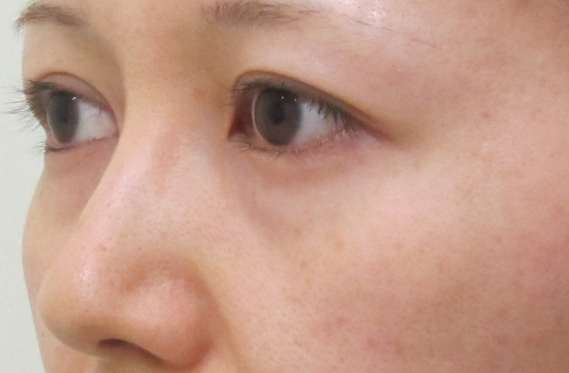 6カ月後・・・目の下にはごくわずかにシミ(茶クマ)が残っていますが、目の下の凹凸感はなくなっています。
