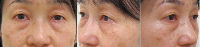 目の下のたるみ取り/クマ治療(経結膜脱脂+グロースファクター)を受けられたモニターの方々の治療経過です。