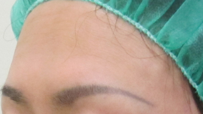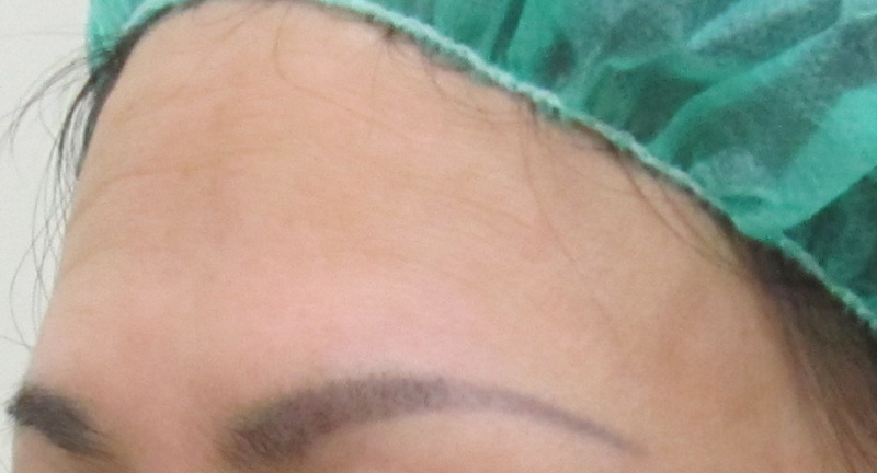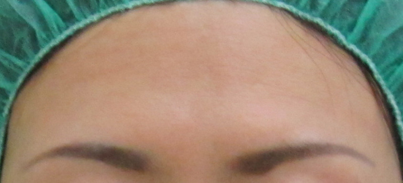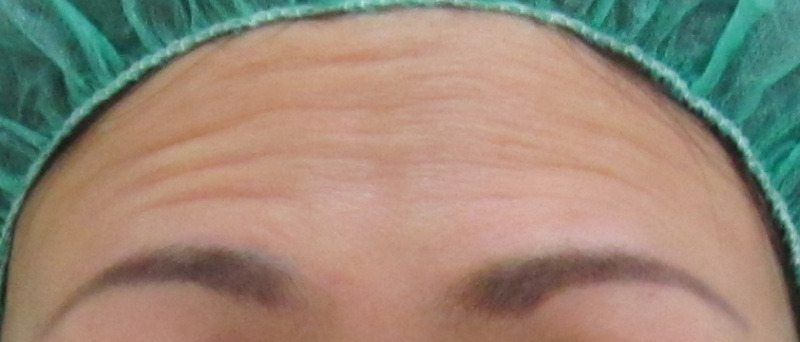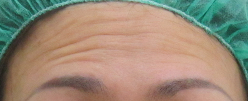 施術前・・・おでこに力を入れてシワを寄せた状態です。