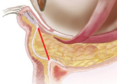 目の下の脂肪の飛び出している余分な部分だけを取るのが経結膜脱脂法