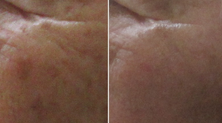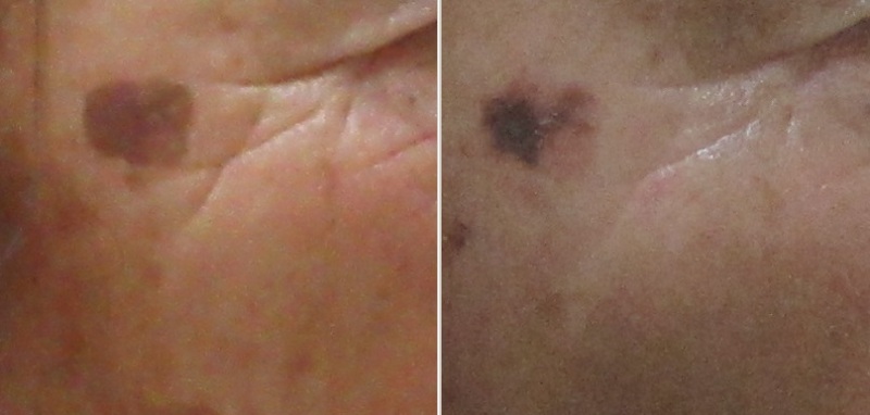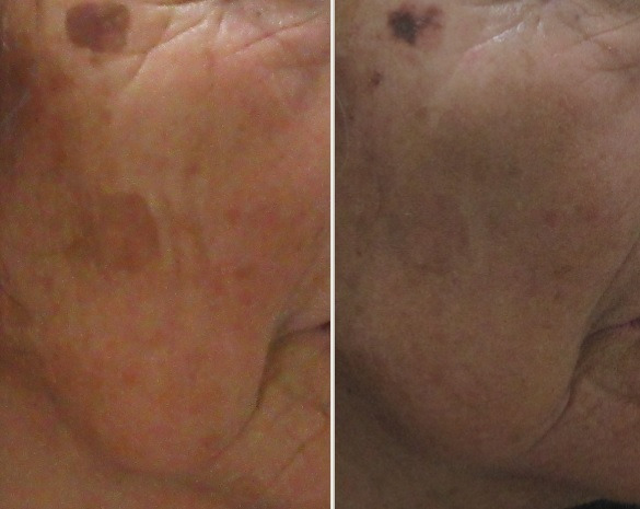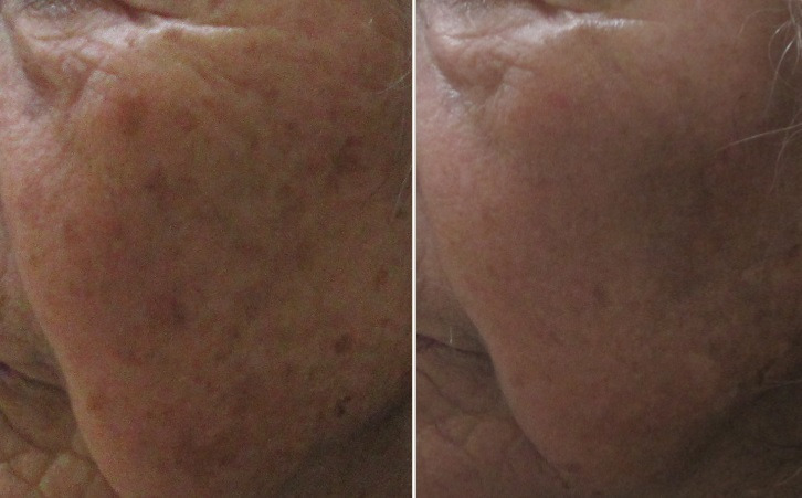 症例写真 最終更新日 2020.05.27 メラフェードによるシミ治療 1ヵ月後の経過 メラフェードによるシミ・くすみ治療を受けられたモニターの方です。 施術前/1ヵ月後・・・大きく、濃いシミも徐々に薄くなっていっています。 拡大したところです。 目尻の小ジワも改善しています。 施術前/1ヵ月後・・・反対側です。 散在するシミがきれいになっています。 拡大したところです。 こちらも小ジワが改善してます。 メラフェード は、3本セットの塗り薬です。 シミがある古い皮膚を外に出して、新しい皮膚に入れ替えます。 新しい皮膚は、白くてハリのある皮膚に生まれ変わっています。 ダウンタイムがほとんど無く治療できます。 一つ前のページへ戻る>>
