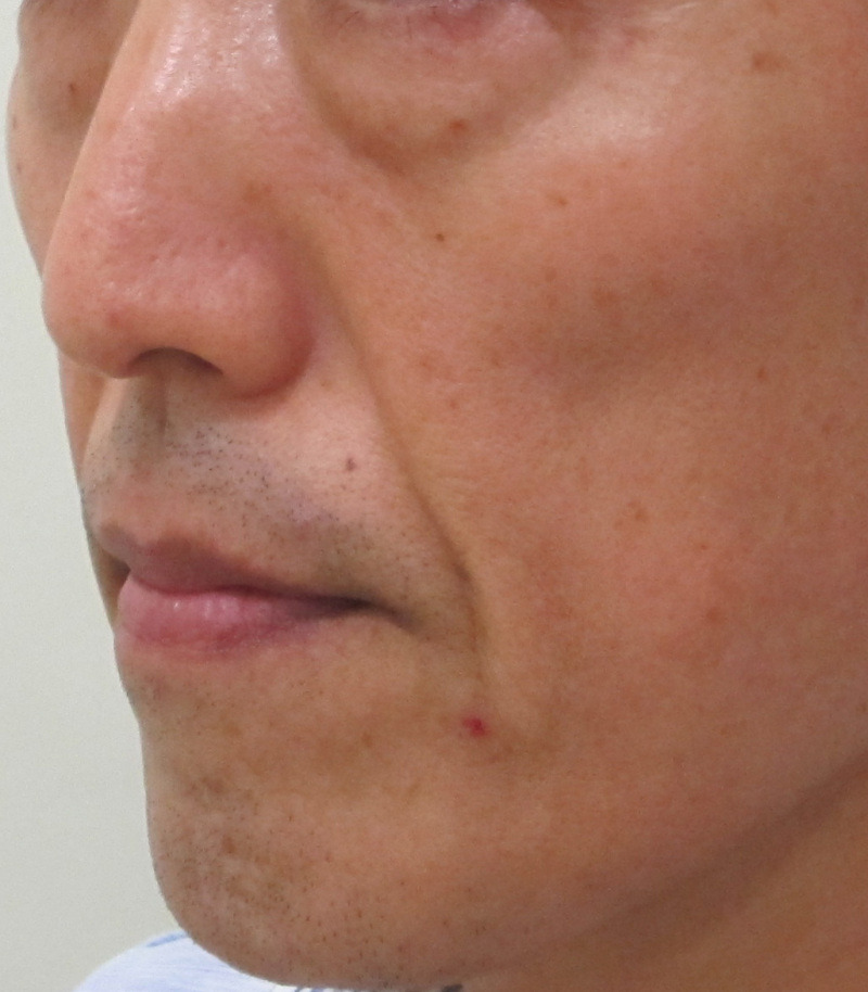 皮膚は紫外線の影響で薄くなっており、頬の皮膚が落ちることでほうれい線ができています。