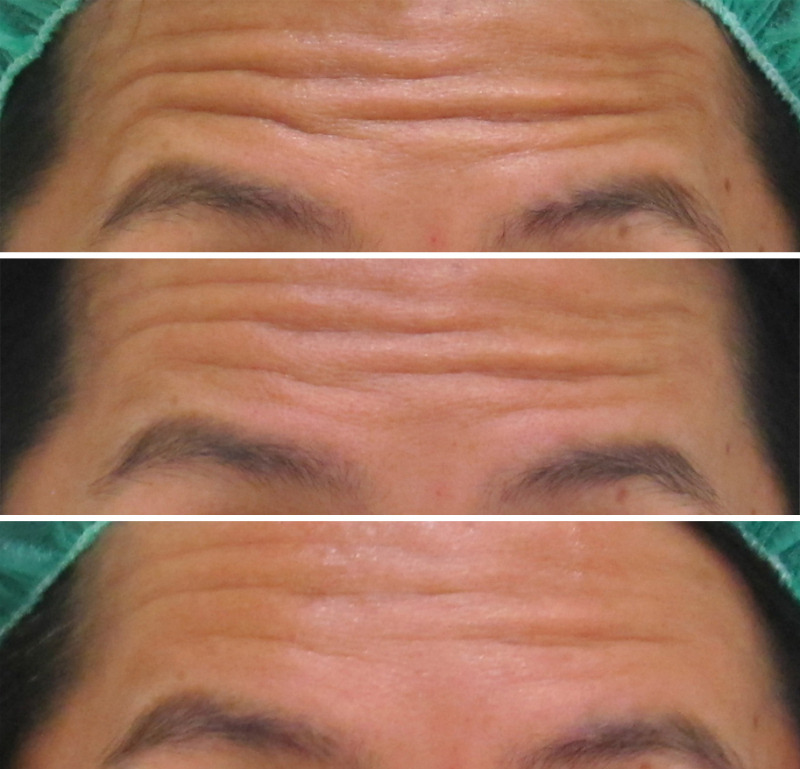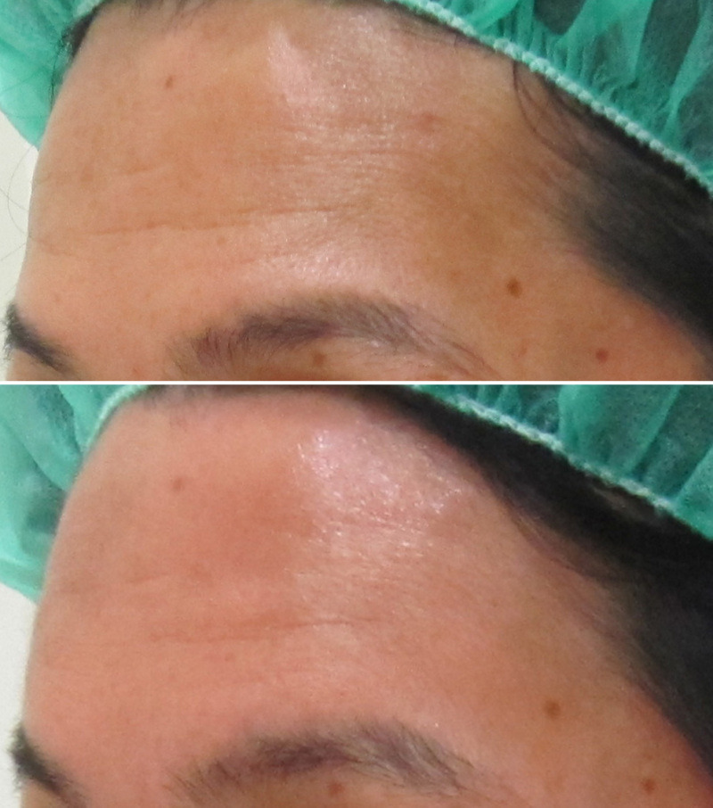 グロースファクターによる額のシワ治療を受けられたモニターの方です。