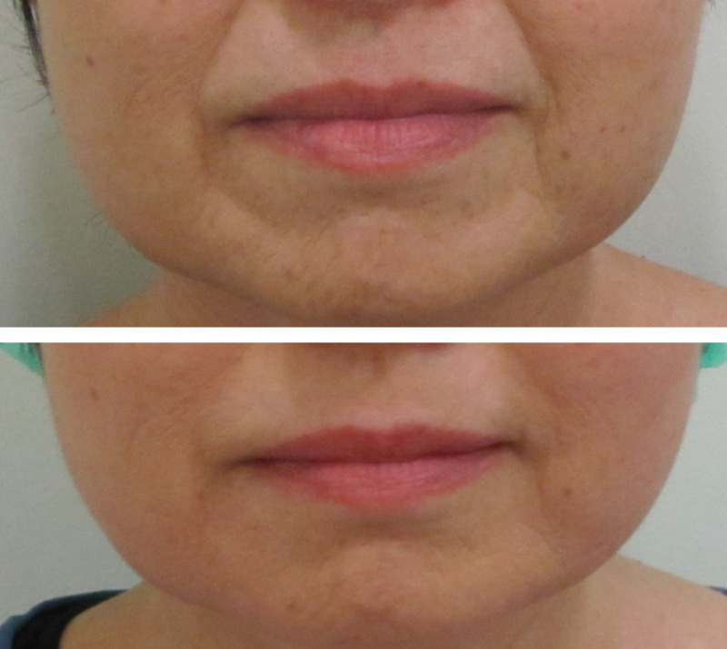 施術前/6ヵ月後・・・特に口周りで見比べると全体的にシワが浅くなっているのが分かります。