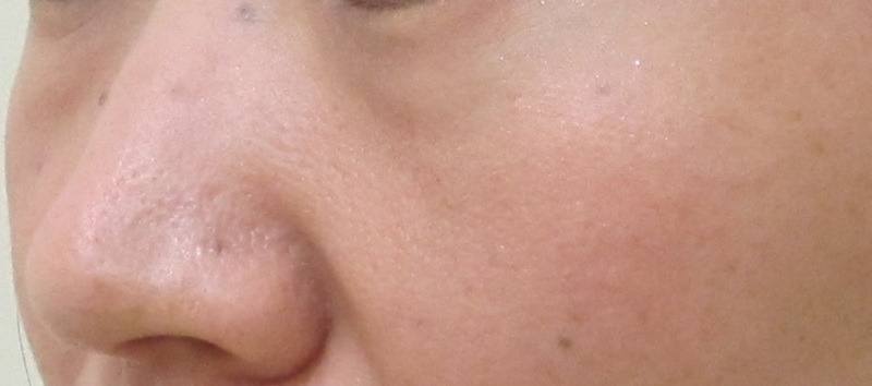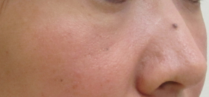 7カ月後・・・修正治療では脂肪は取っていないので、多少凹凸感は残っていますが、以前よりは緩和されています。