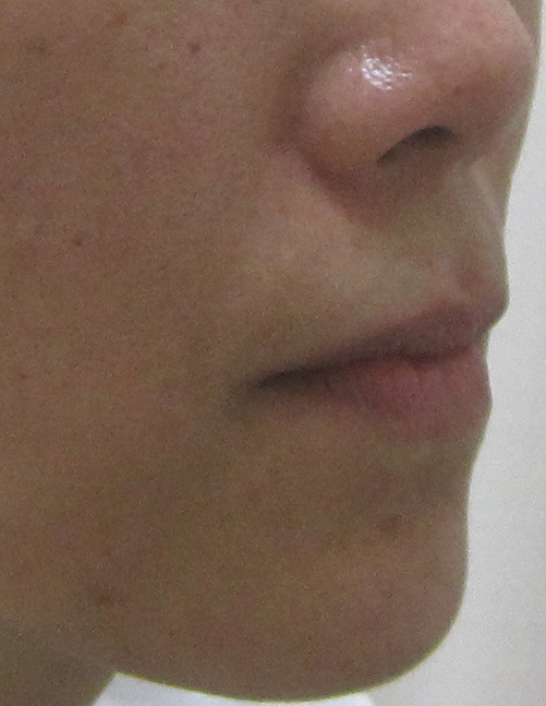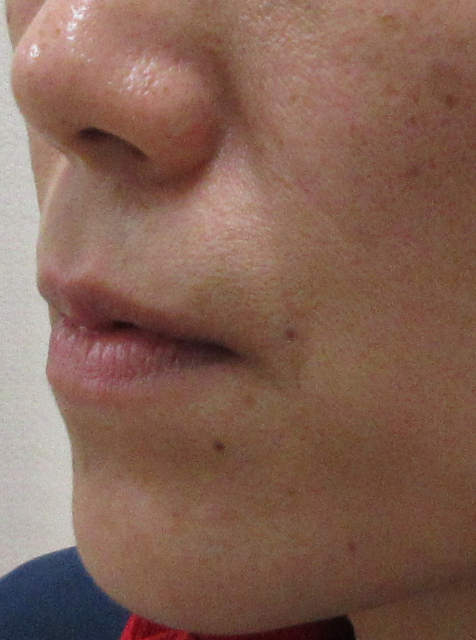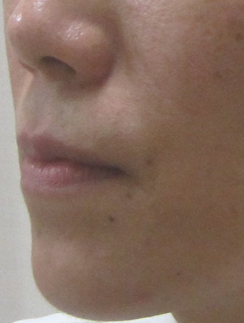 治療前・・・ほうれい線の下の方にうっすらとシミがあります。