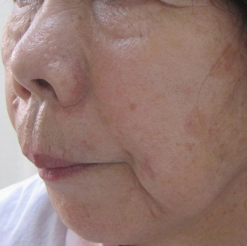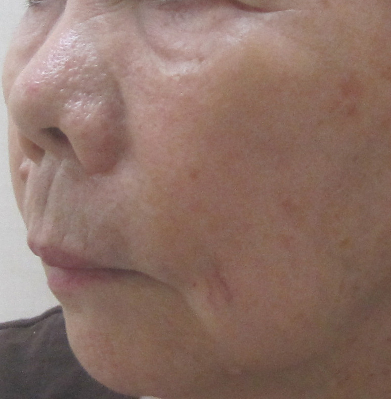 症例写真 最終更新日 2022.01.25 顔のたるみ治療+シミ治療 1年3カ月後の経過 メラフェードによるシミ・くすみ治療後に顔全体のグロースファクターによるたるみ治療を受けられた方です。 治療前・・・メラフェードによるシミ治療をまず受けられました。 シミ・小ジワが改善しています。 次に、顔全体のグロースファクター注入療法を受けられました。 6カ月後・・・シワ・くすみともに改善しています。 1年3カ月後・・・いい状態を維持されています。 1年3カ月後・・・笑っても違和感はありません。 治療前・・・斜めから見た状態です。 1年3カ月後・・・きれいになってますね。 一つ前のページへ戻る≫