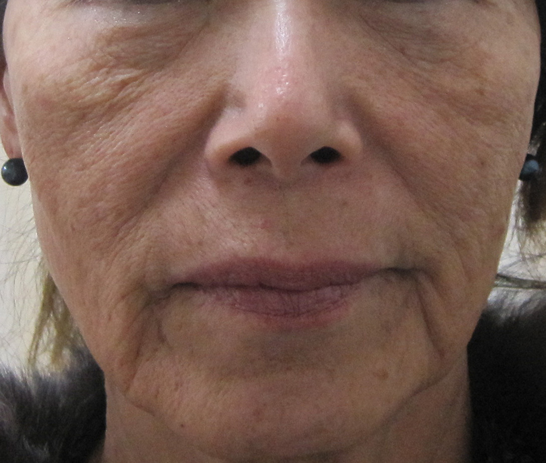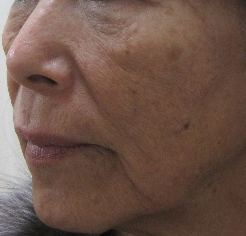 施術前・・・全体的に皮膚が薄く、シワが比較的くっきりあります。