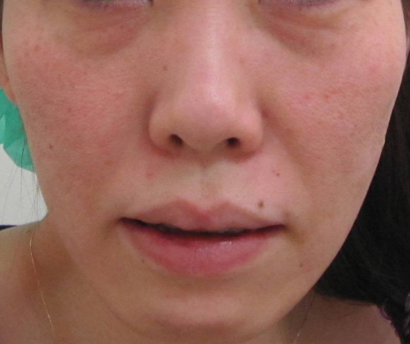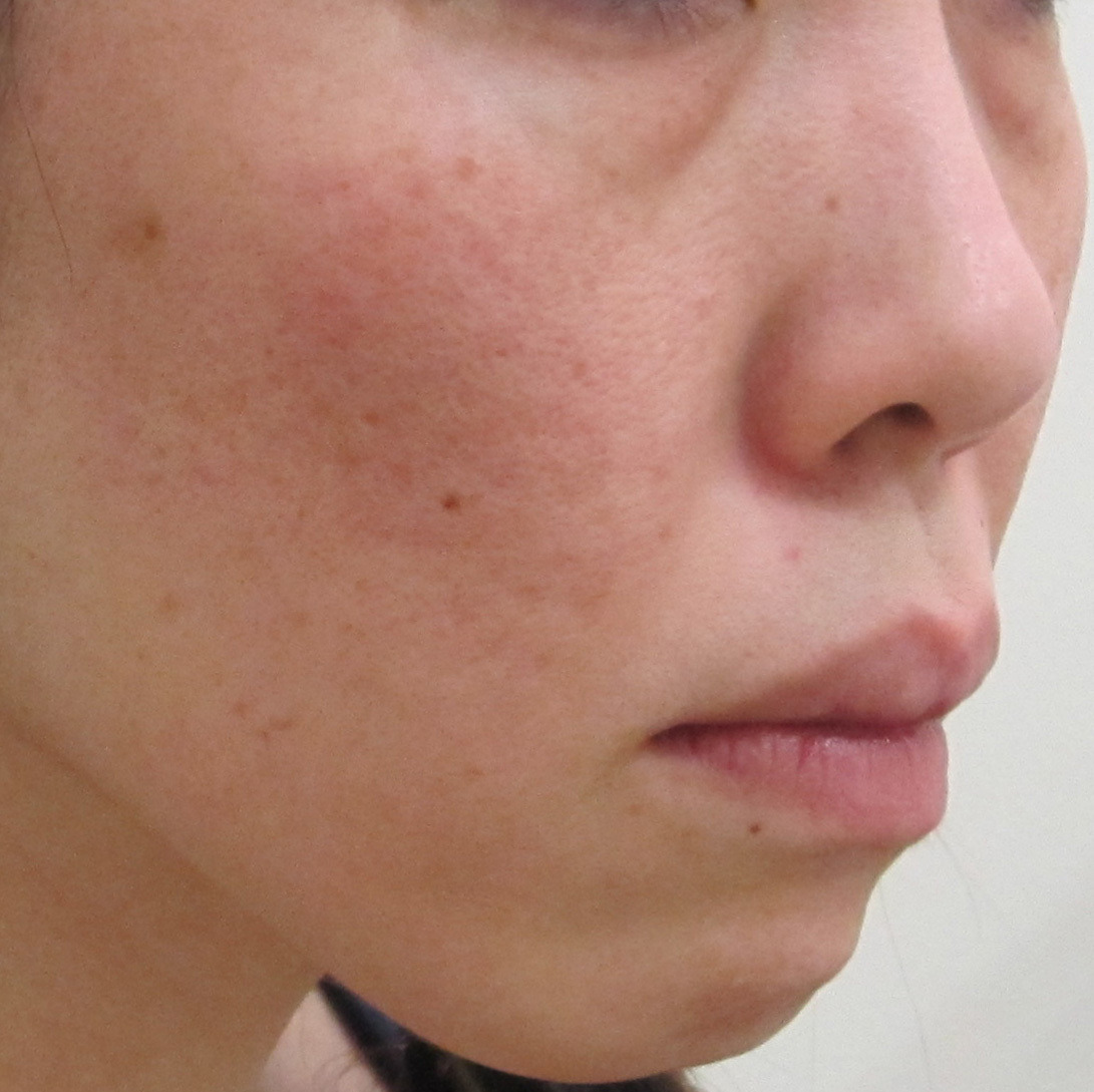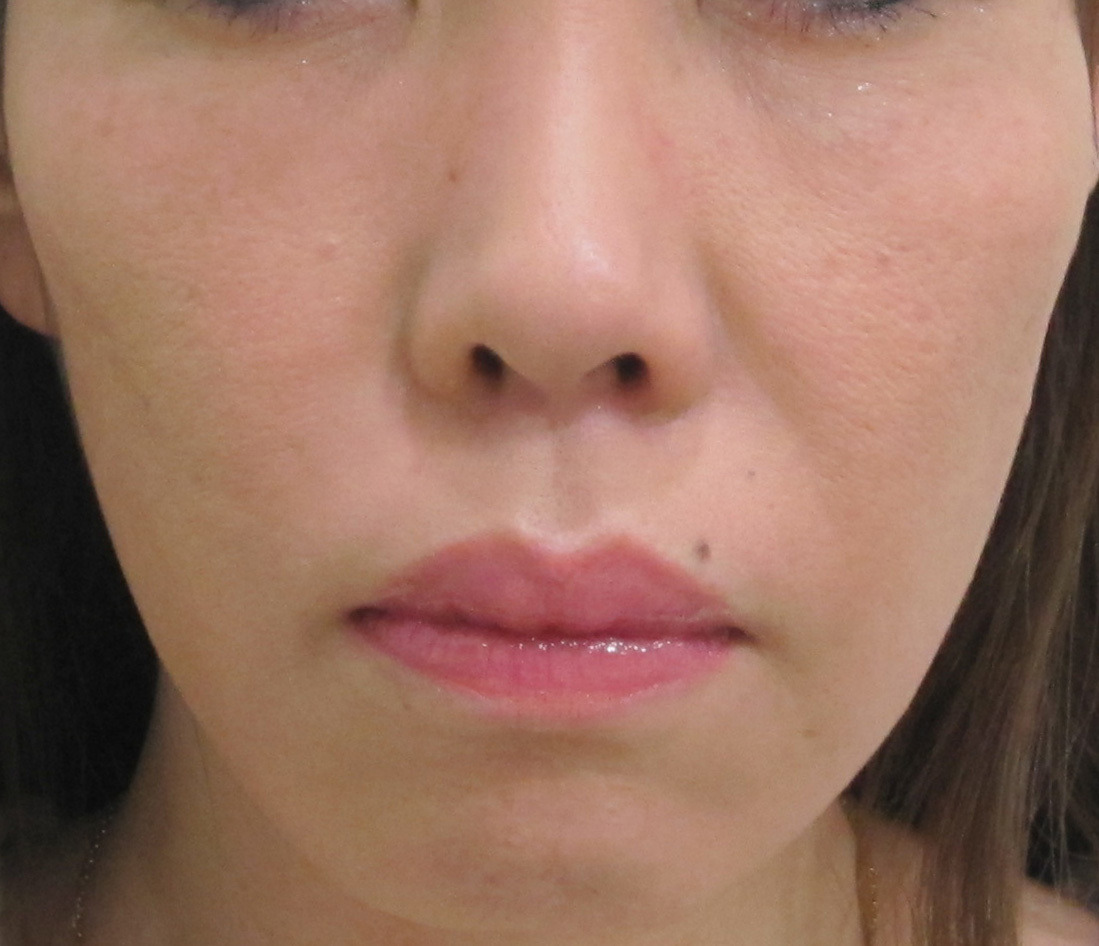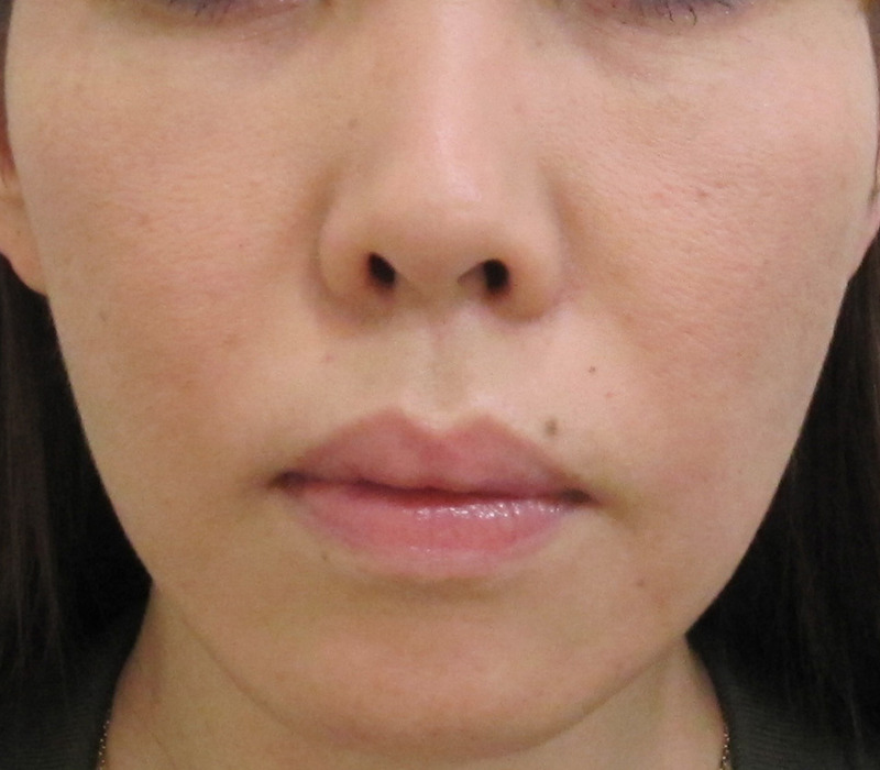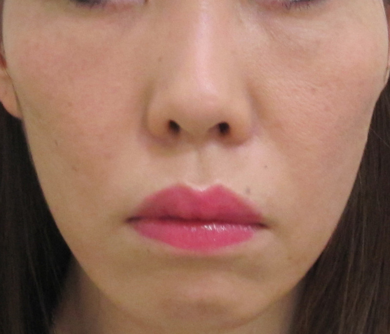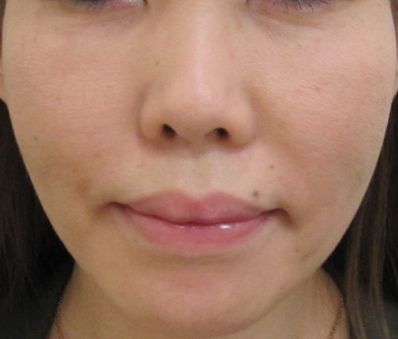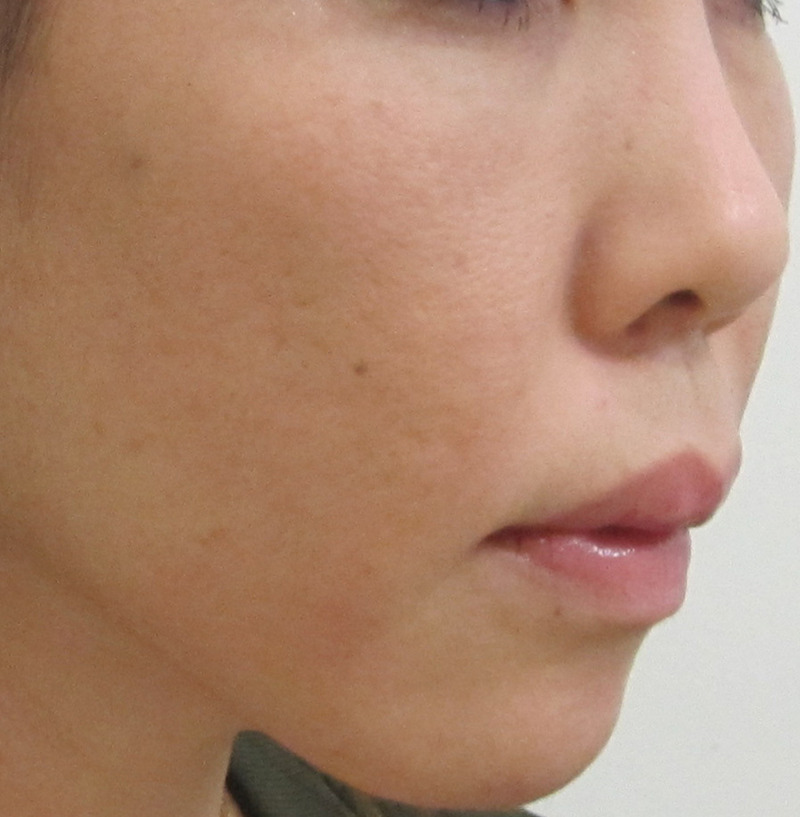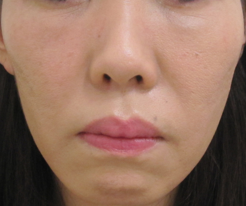 口元は、シミ・くすみのため、線があるように見えていますが、実際の凹凸はほとんどありません。