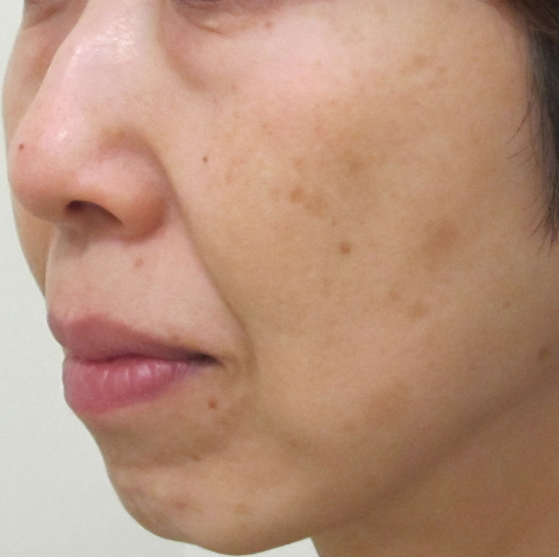 5.目の下~頬にはシミがあり、クマがさらに目立つ要因となっています。(茶クマ)