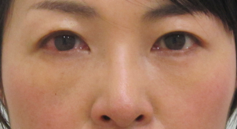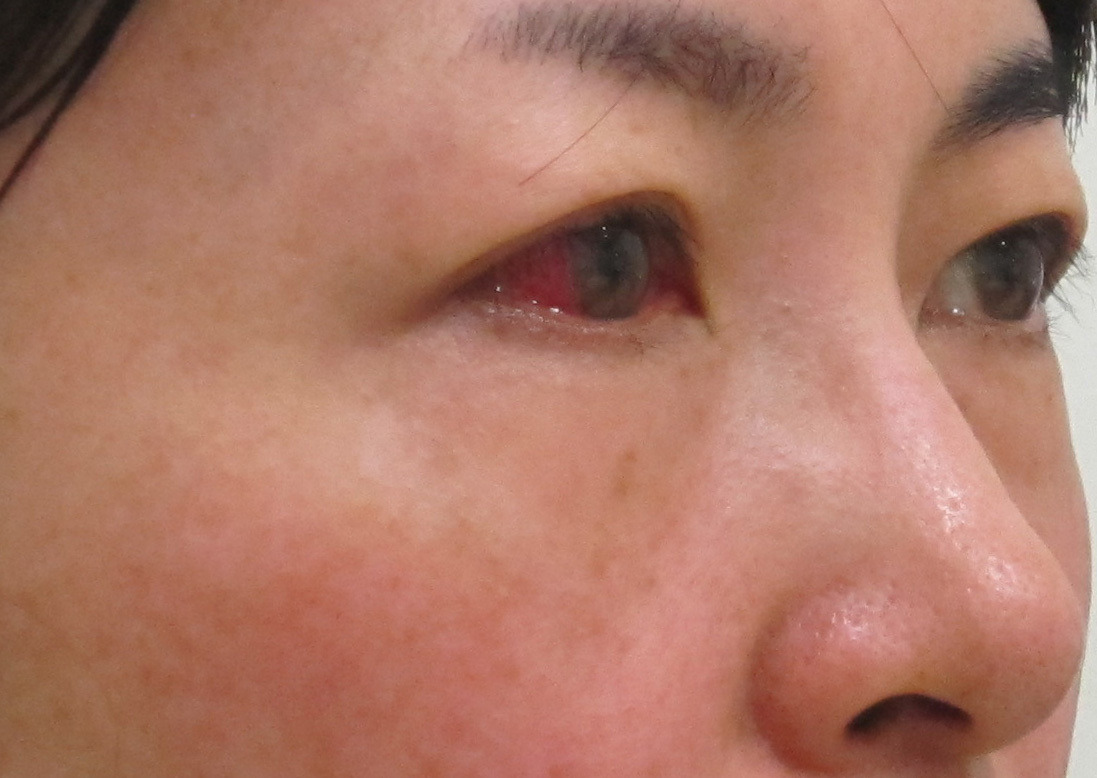 右目(向かって左)は、術前数日前にたまたま結膜下出血が起きたとのことです。