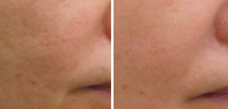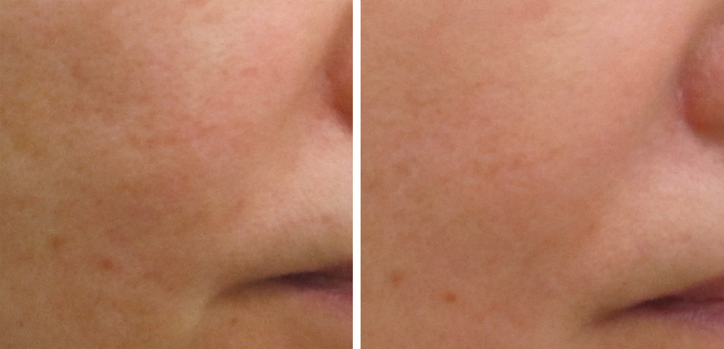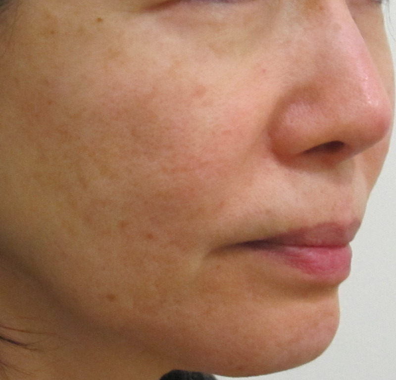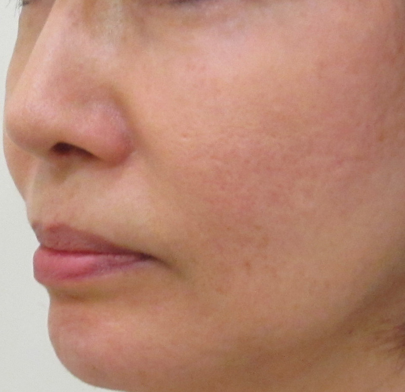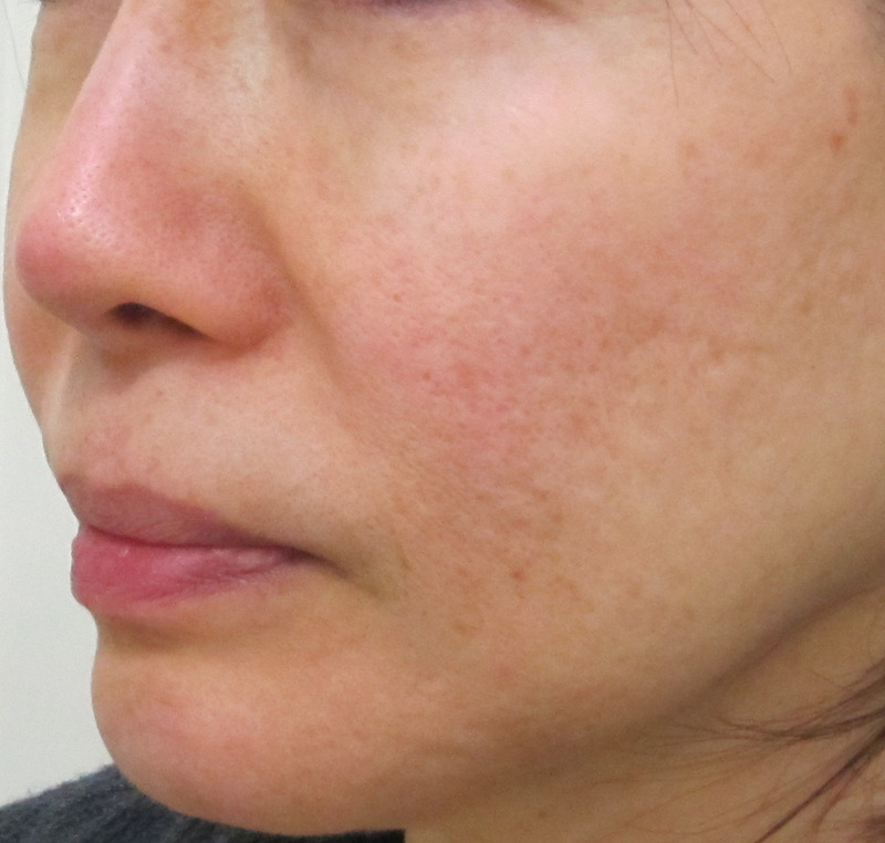 それに対して、頬はニキビ跡の凹凸が改善し、キメ・くすみが改善しています。