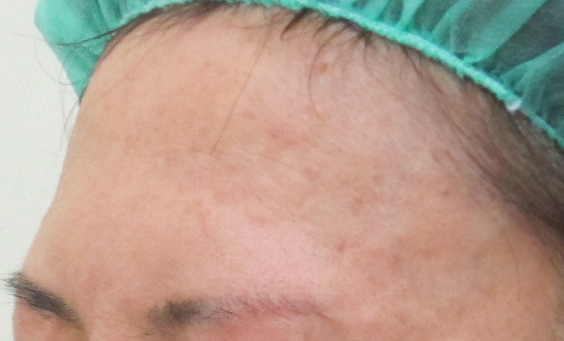 グロースファクターによる額のシワ治療 6カ月後の経過