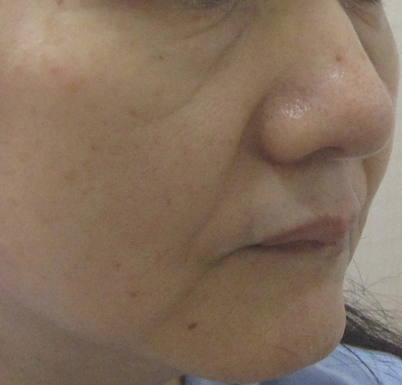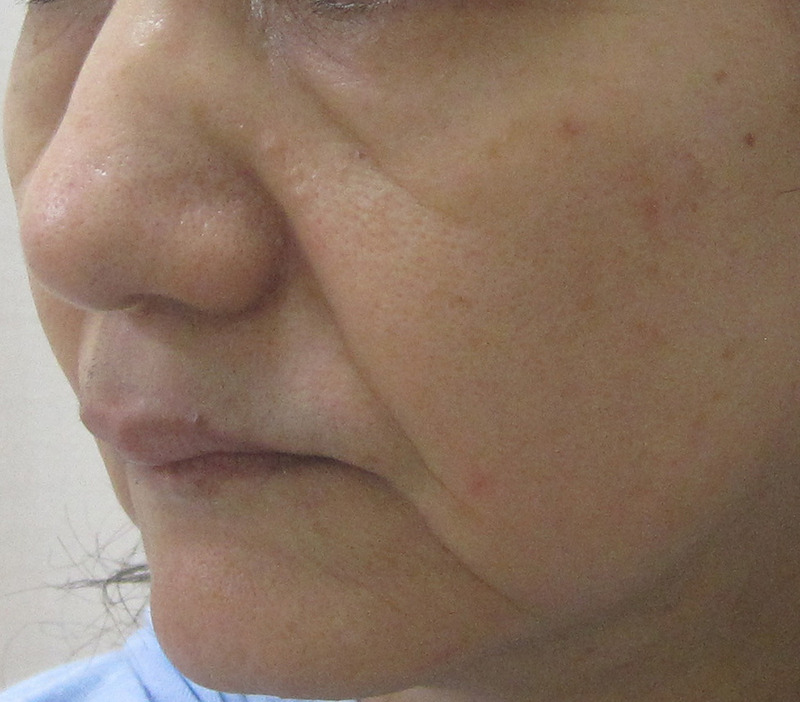 グロースファクターによる顔全体のたるみ治療(目の下、頬、ほうれい線、口角のグロースファクター)を受けられたモニターの方です。