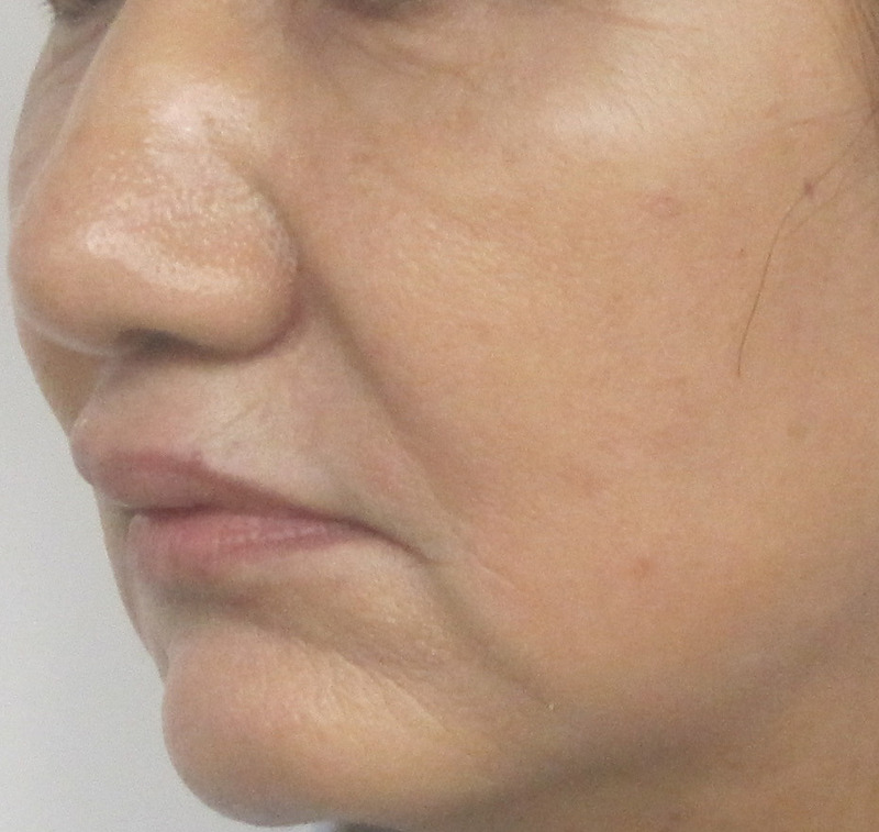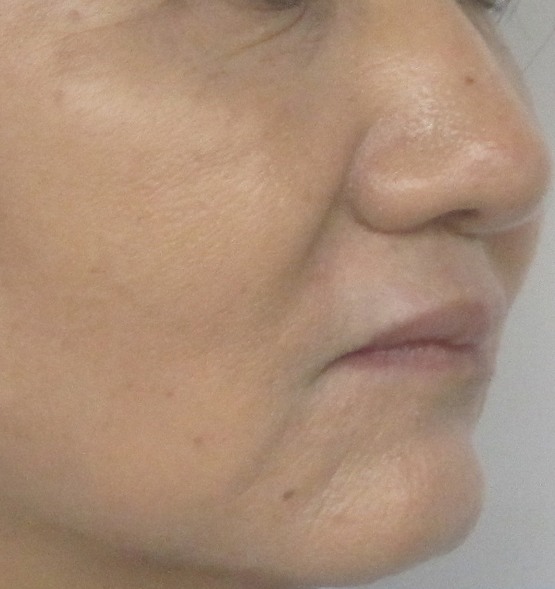 施術前・・・比較的くっきりとゴルゴ線ほうれい線マリオネットラインがあります。
