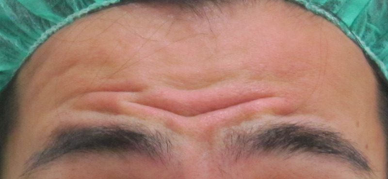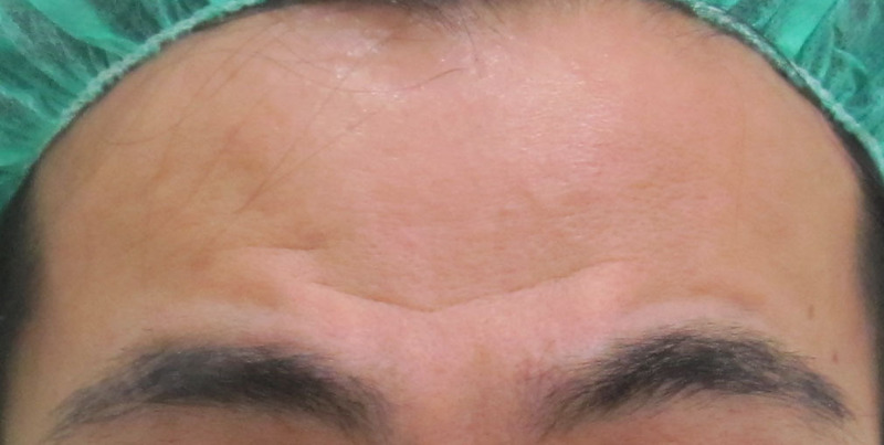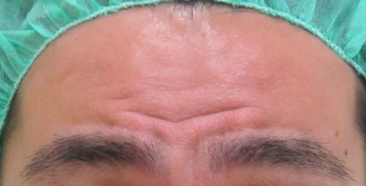 11ヶ月後に残ったV字のシワに追加投与を行った直後の状態です。