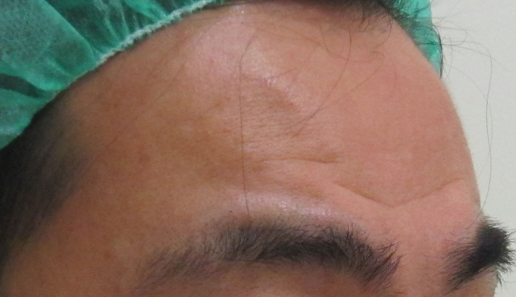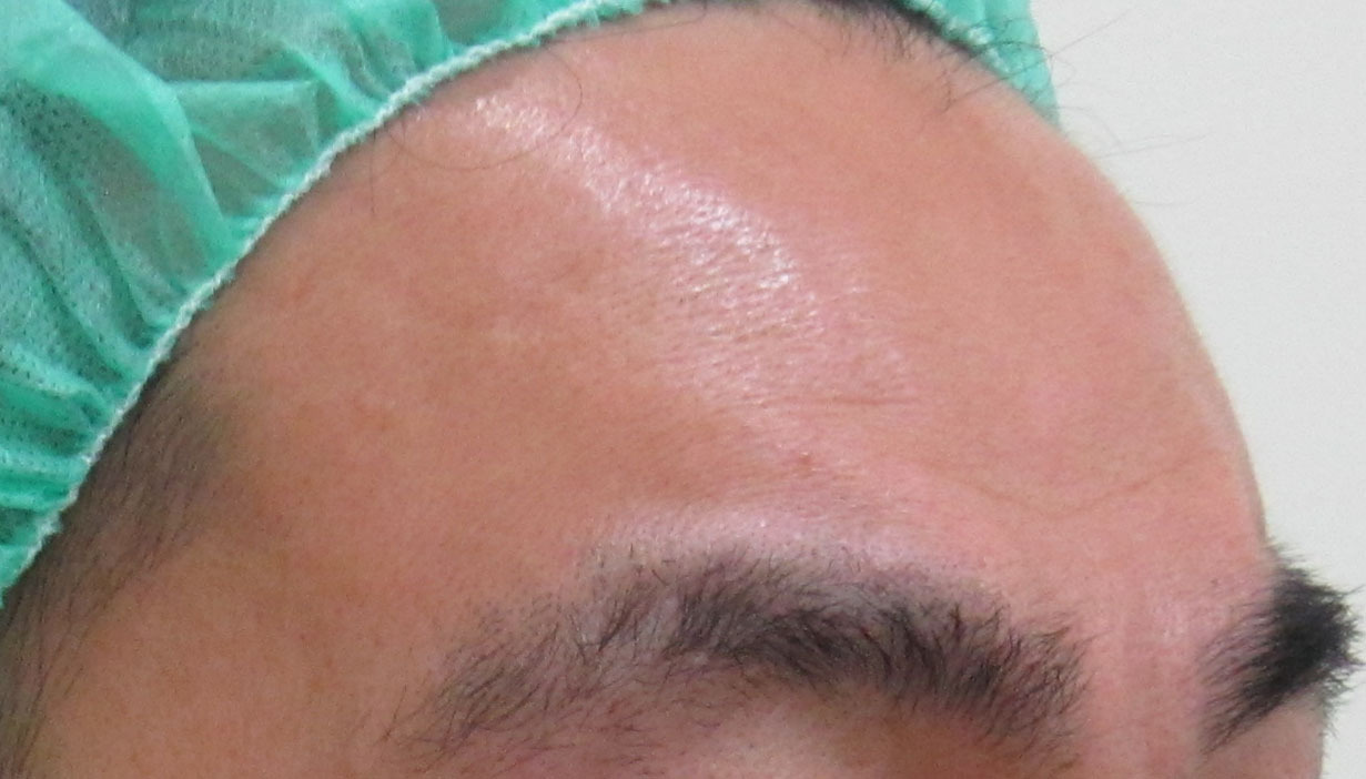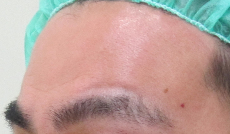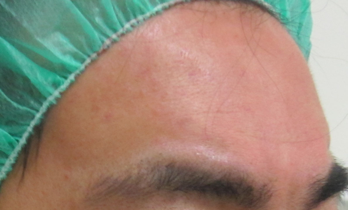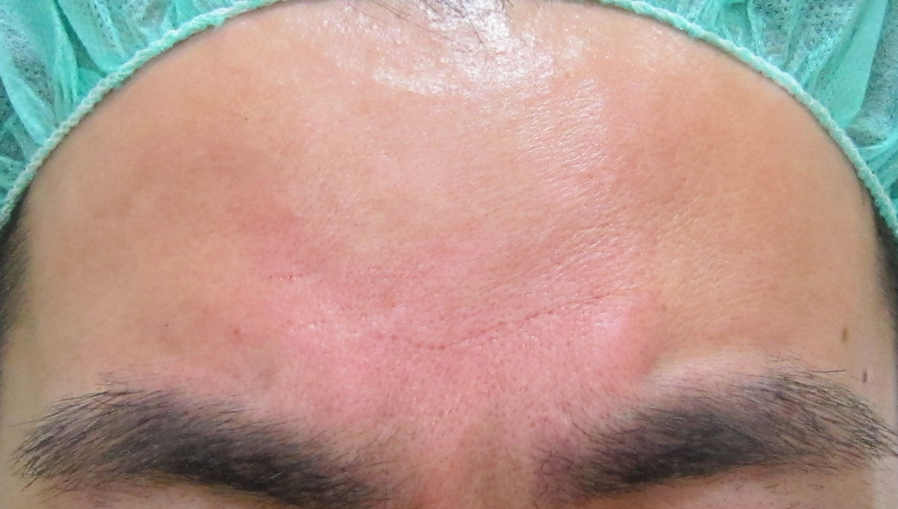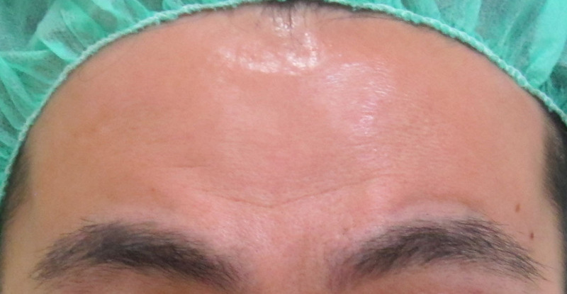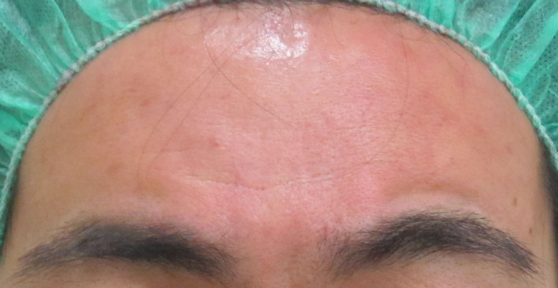 施術直後・・・額は内出血がどちらかと言うと起こりにくい場所です。