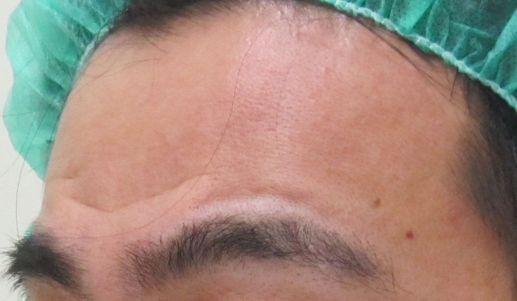 施術前・・・眉毛を挙げた状態での比較です。