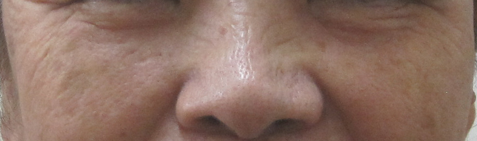 2.目の下の脂肪によるふくらみがあり、脂肪の量(進行度) としては中等度です。