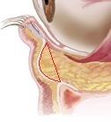 眼窩脂肪を包んでいる膜がゆるむことで、眼窩脂肪が手前に出てきます。