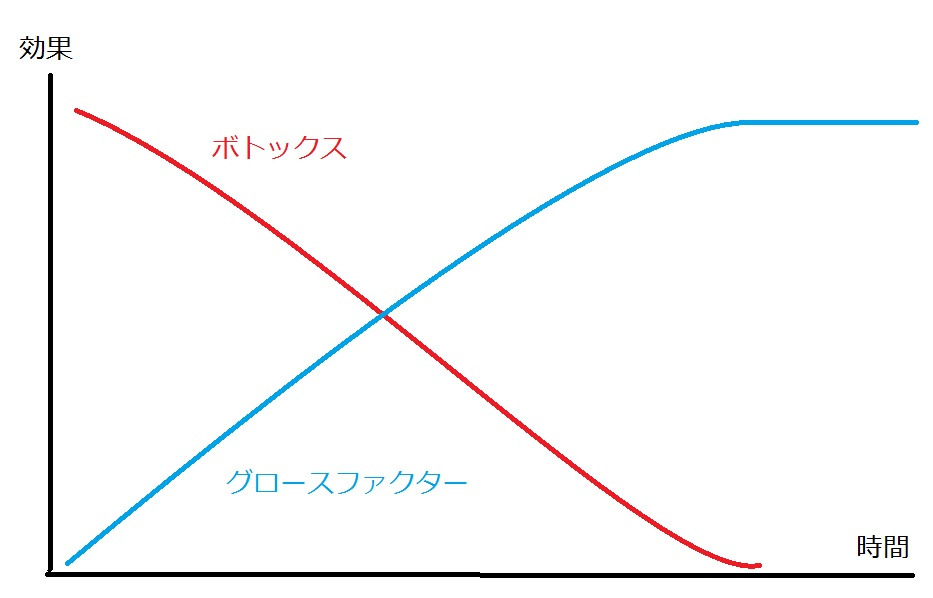 その場合、ボトックスが切れる半年後くらいにグロースファクターの効果が最終的に出てきます。