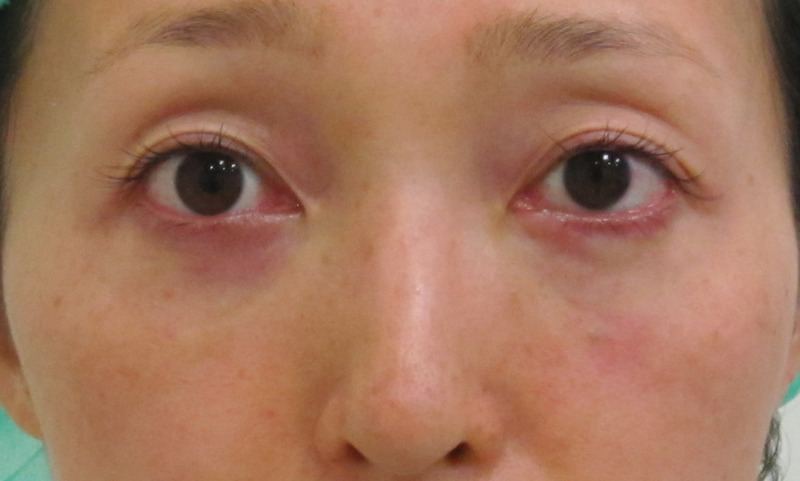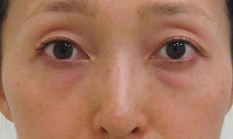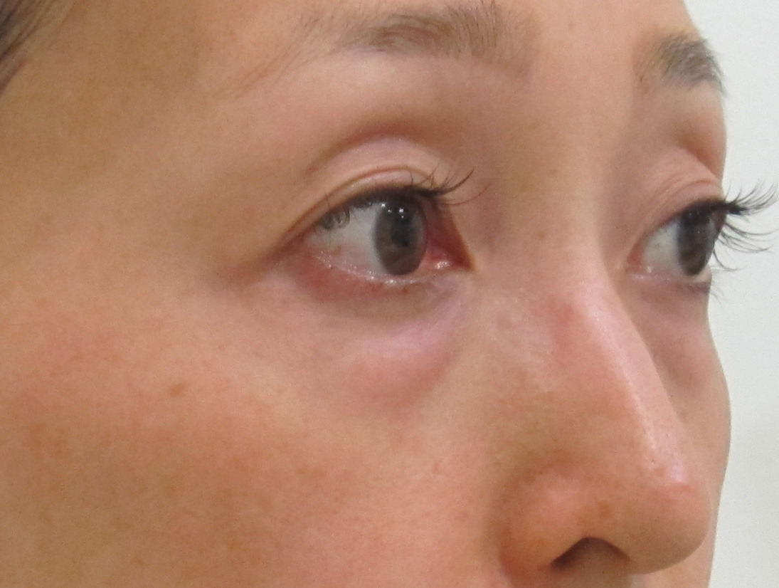 術直後・・・目の下の脂肪を取ることで赤みはすみやかに改善してます。