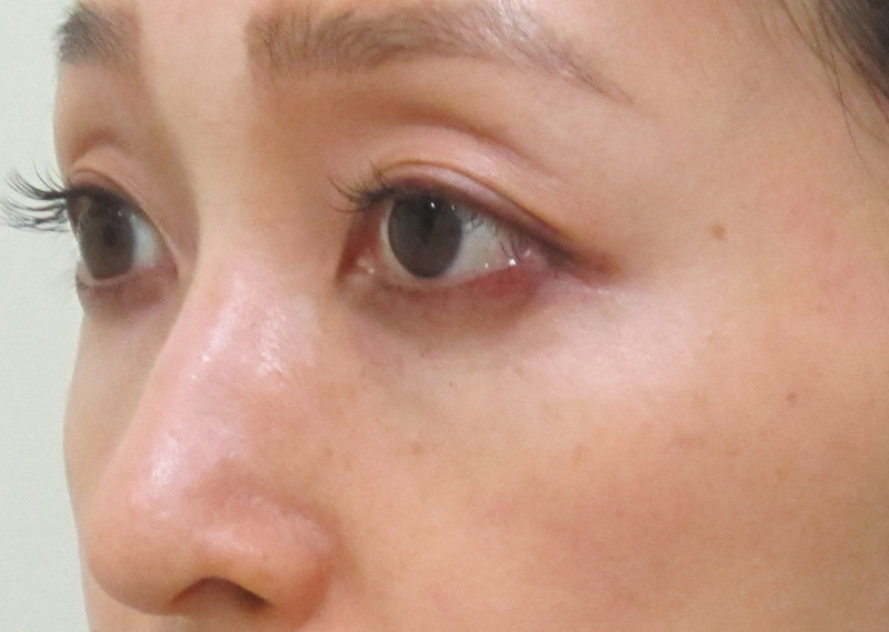 今回、シミは治療されていないので、斜めから見るとシミがうっすらと見えます。